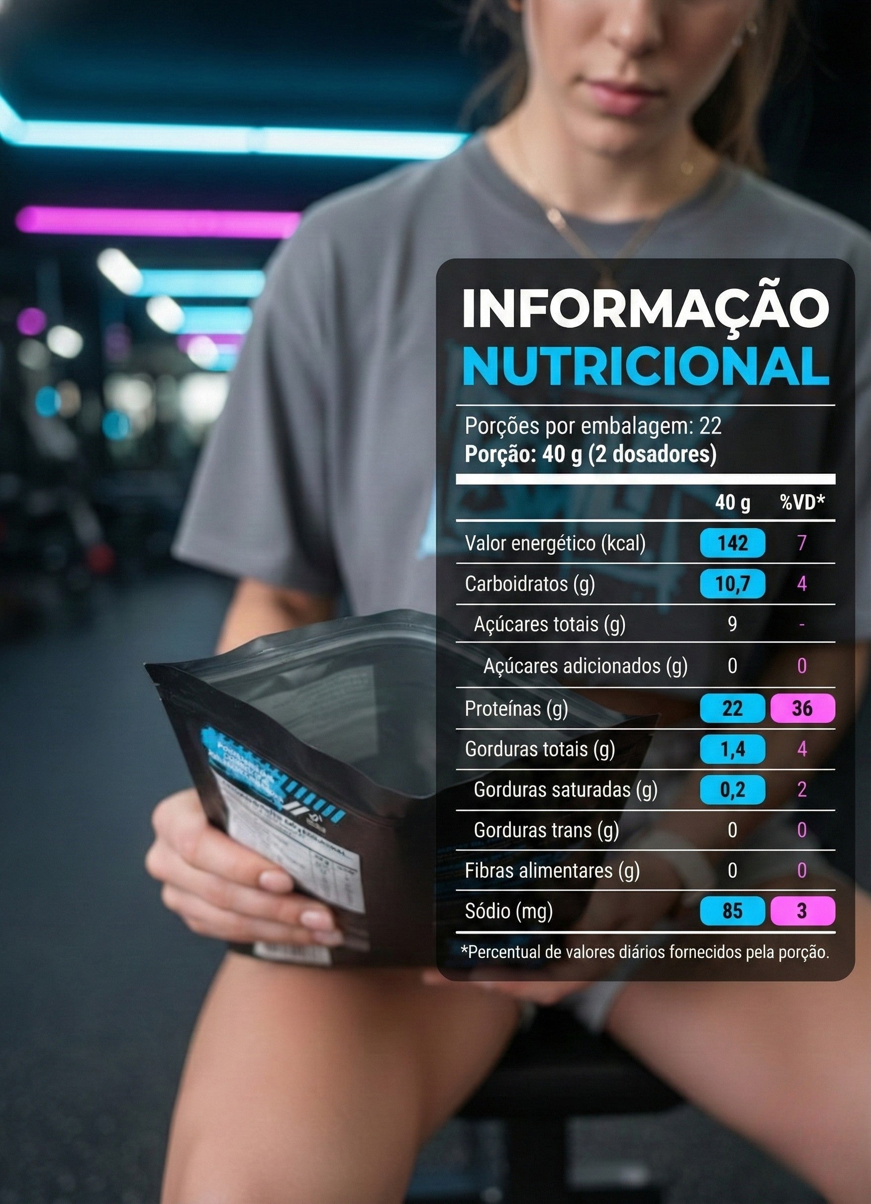 22g de proteínas por dose: Promove o ganho de massa muscular magra.